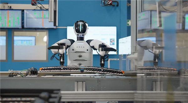 此次宝马将与瑞士海克斯康机器人(Hexagon Robotics)展开合作,首批引入2台AEON人形机器人。该机器人采用轮式底盘设计,配备20余种传感器,具备360°环境感知能力,可更换手部、抓取器及扫描工具,动态适应性表现出色。