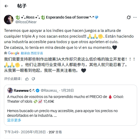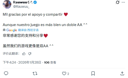 围绕作品规模与定位,部分玩家在社交平台上讨论其是否属于3A、2A或独立游戏。对此,参与项目开发的成员Rauwuu_在回应玩家评论时明确表示,《炼魂之地:神偶剧院》的定位更接近2A级别作品,而并非独立游戏。这一说法也为社区长期存在的猜测提供了官方层面的确认。