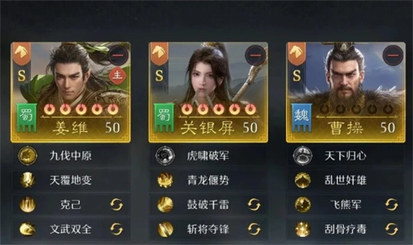 1、姜维+关银屏+曹操。