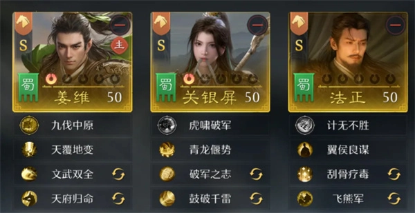 3、姜维+关银屏+刘备。