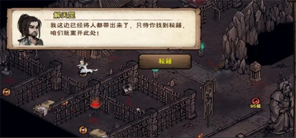 4、之后分别打开(5,8)(5,5)牢门,再解救(7,8)(7,5)两处受害侠客,原地(7,5)对话碧游教众触发战斗。