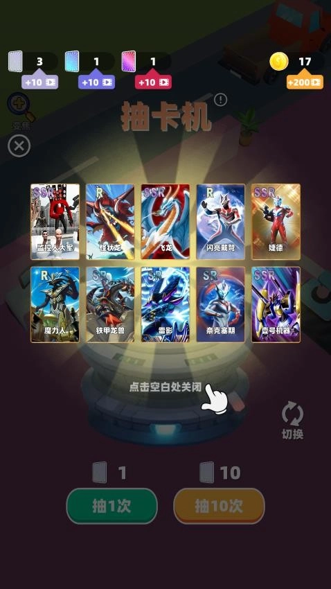 基础抽卡消耗金币或钻石获取随机卡牌。