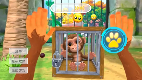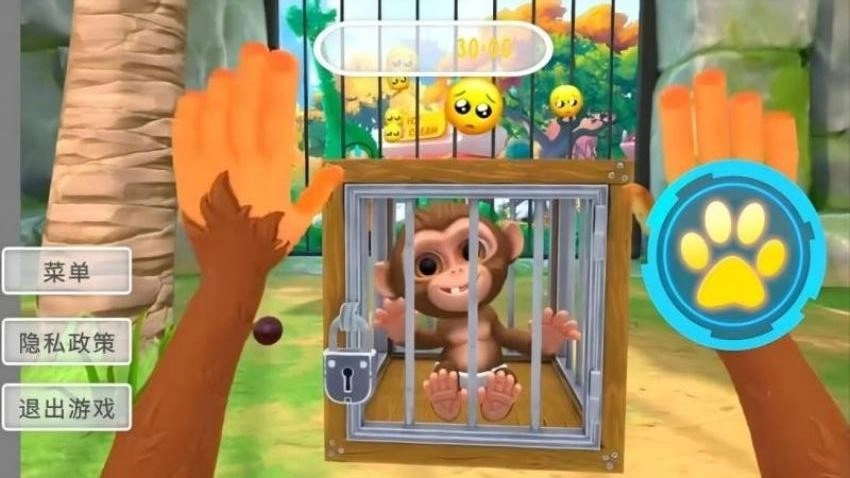 游戏采用第一人称视角,让你仿佛真的化身成一只猴子,体验攀爬、跳跃的乐趣,互动反馈尤其真实。