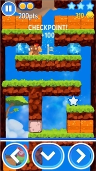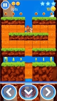 星光大冒险游戏的界面以卡通为主非常可爱呆萌,游戏中玩家需要控制大猩猩和人物收集各种宝石还有关键的钥匙,并且是每一关都隐藏着三颗白色发光的星星,最后打开关底的宝藏即可过关。同时每一关都有星星可以收集,但是每关都收集到三颗星星还是有一定的难度的,因此玩家需要掌控好方向让猩猩挖开泥土向前或者向下行走,并且还需要一定的技巧才能获得三颗星星。