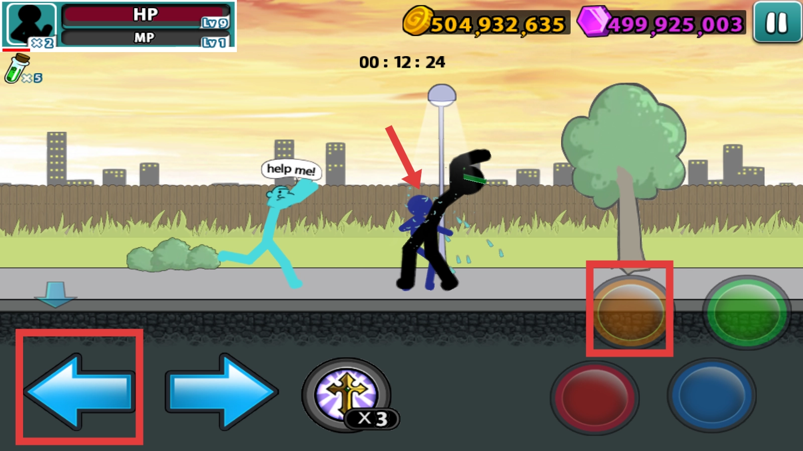 战斗时点击左箭头移动,配合【橙色按钮】发起攻击,就能快速打倒敌人,把求援者救下来啦。
