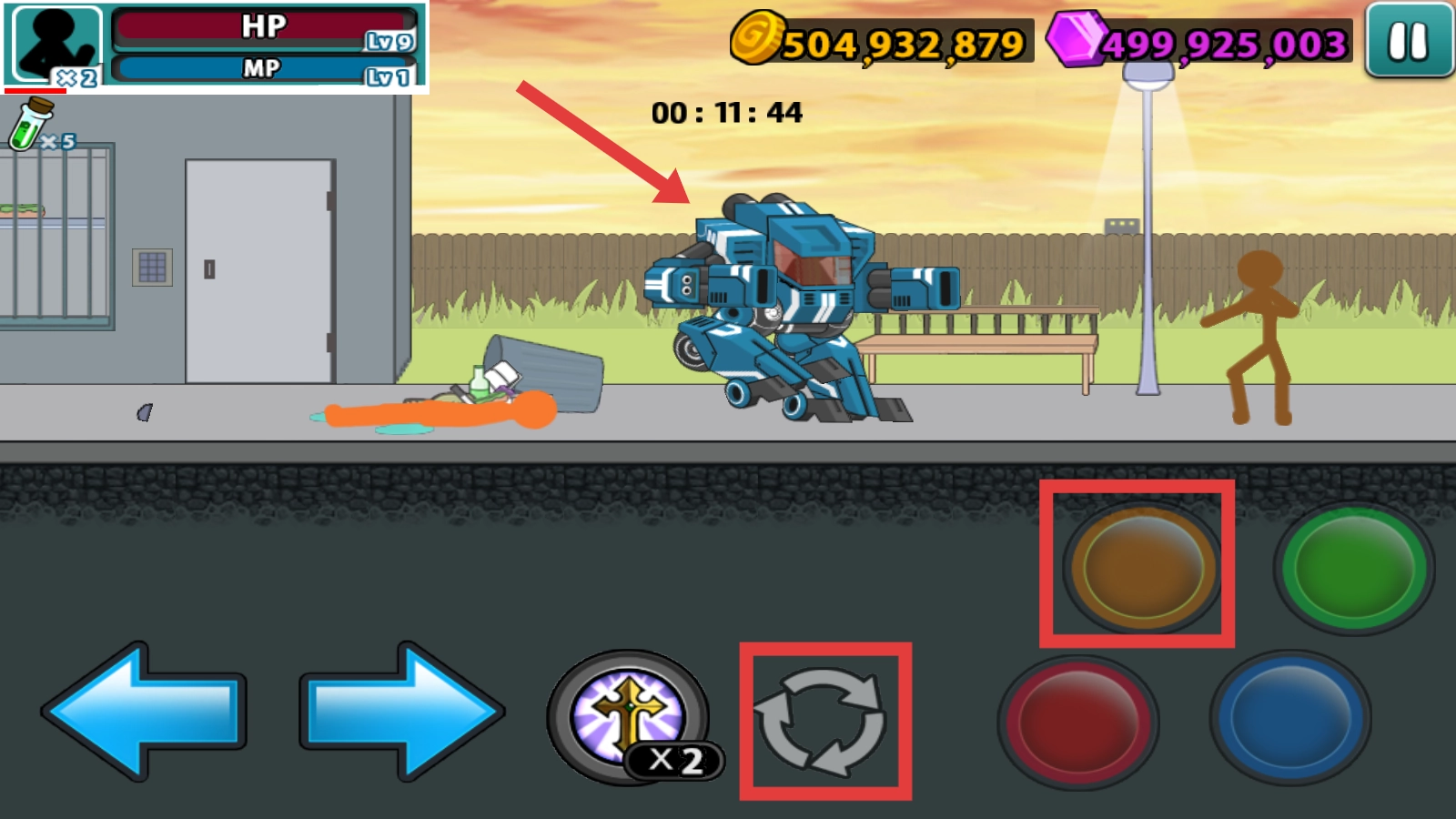 当敌人数量过多时,点击【转换按钮】即可变身为机器人,其大范围攻击能力能够帮助你快速清理战场,助力你顺利通过关卡。