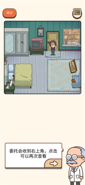 把地上的逗猫棒捡起来逗猫,趁这个机会拿走工牌,再拿走老奶奶的拐杖。通过玩小游戏进入服务台,取走台上有标号的药瓶,按照数字1234的顺序在左侧推车上摆放好,接着把工牌和推车一起交给护工,然后进入里面的房间,从垃圾桶里找出胶布。用拐杖将电脑桌下面的电线捞出来,再用胶带把电线粘好就完成了。