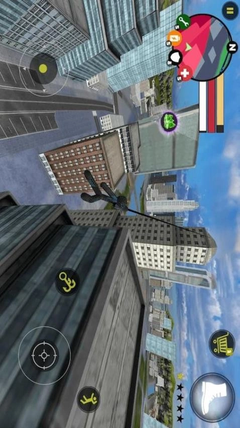 左侧负责移动与加速,右侧对应绳索和攻击(跳跃)功能,跳跃键独立设置;右上方的武器切换界面,以及血量、经验的数值都能实时刷新,信息清晰直观。玩家可自由选择玩法,与其他帮派成员展开枪战——击杀敌人能获取经验,连续击杀会累积星级,届时警察和周边角色会重点“关照”,对你发起猛烈攻击。你的核心任务,就是在这样的局势中存活下来,并成功消灭对手。