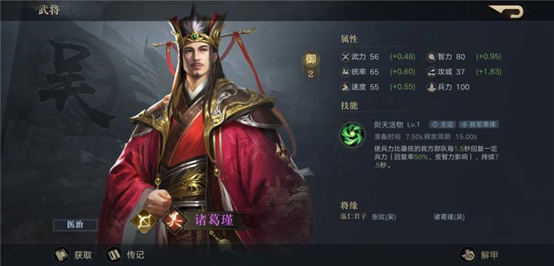 诸葛瑾也是奶爸,亮点是易配将,统御低。