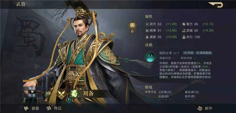 刘备是开荒神将,可做主坦和奶爸,技能强大。