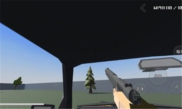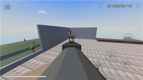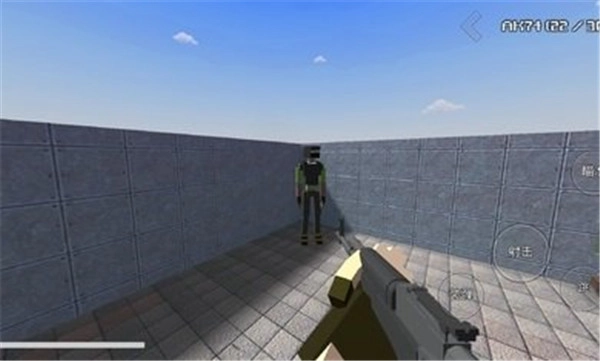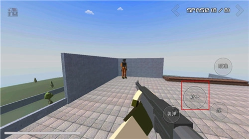 进入游戏界面后,能看到以下操作选项:装弹、射击、瞄准、跳跃,玩家可通过移动来观察周围环境。