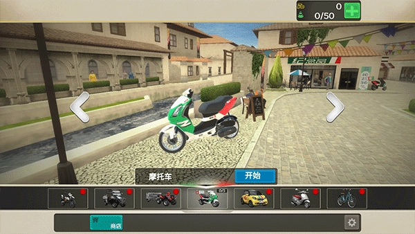 在本站完成安装后,点击打开即可进入游戏,此时会直接获得一辆可使用的小摩托,我们只需点击开始按钮就能游玩。