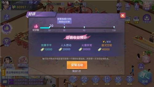 你需要在这里合理地升级自己的餐厅,针对不同的细节进行升级会让你获得丰厚的回报。