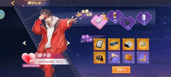 赠送礼物能提升好感度:每位合伙人都拥有四种专属礼物,其中橙色礼物可增加1000好感,紫色加400,蓝色加200,绿色加100;而非专属礼物的好感加成则为橙色500、紫色200、蓝色100、绿色50(需要注意的是,升级操作不会清空已经赠送积累的好感度)。