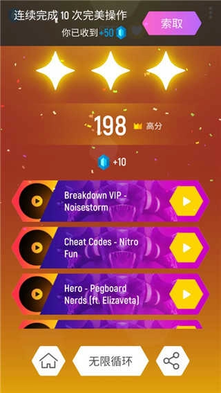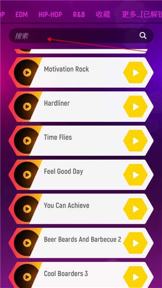 进入节奏弹球游戏,可以看到游戏中拥有大量的歌曲;