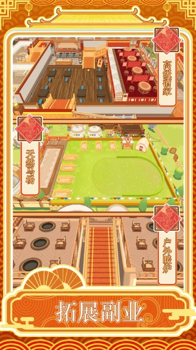 游戏以宋代为宏大背景,围绕壮丽山河间的多样地貌特色铺展,使你能够开设各类具备地域特征的酒店。
