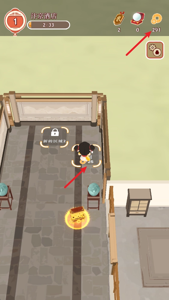 客人们遗落的金币都散落在地面上,得靠近到一定距离才能拾取。