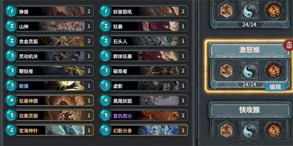 激怒猴这套牌的小怪血量偏低,得持续让它们登场才能发挥出应有的效果。