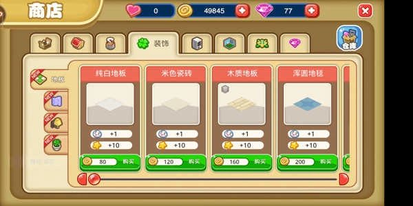 经营系统中设有装修功能入口,点击进入后选择商店板块,就能在此处选购或出售桌椅、墙纸、地毯等丰富多样的装修物料,助力你打造专属餐厅。你可以依据个人偏好挑选心仪的装修风格,无论是日式、欧式、中式,还是自由混搭,均无限制。