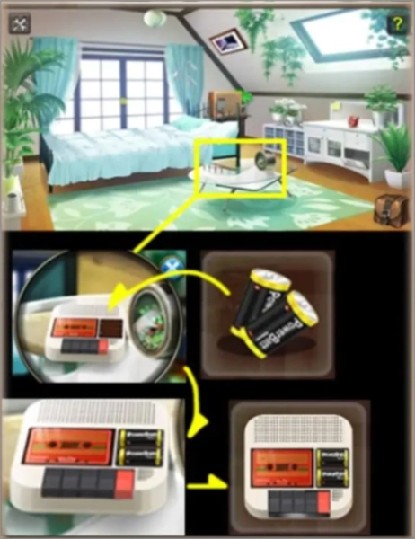 最后,点击主场景圆桌上的录音机,把电池装进去,就能得到一台有电的录音机,为接下来的剧情做好准备。