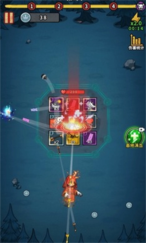 道长穿过格子后,会依据格子里摆放的小卡牌触发各异的攻击