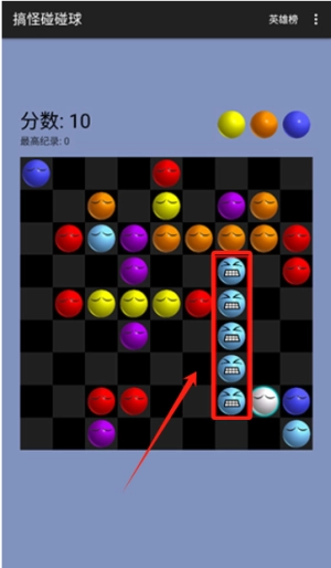 首先打开搞怪碰碰球手机版游戏,进入游戏后初始会出现5个球。游戏规则是:只要将5颗及以上颜色相同的球连成一条线,不管是直线、横线还是斜线,都能消除这些球。要是当前局面无法消除任何颜色的球,画面就会自动再添加3个球。