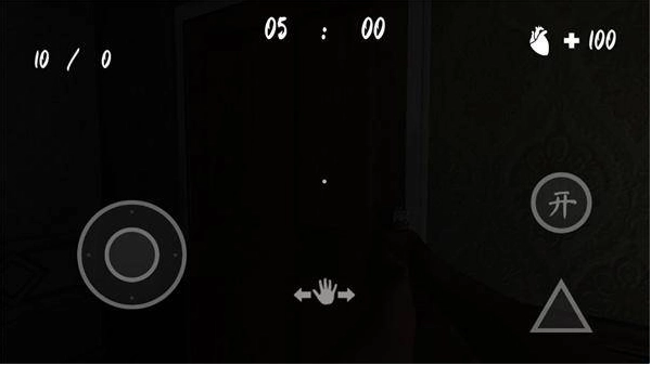 左侧设有移动摇杆,中间区域可通过滑动屏幕来环顾四周,顶端显示游戏倒计时,右上角则是你的生命值。