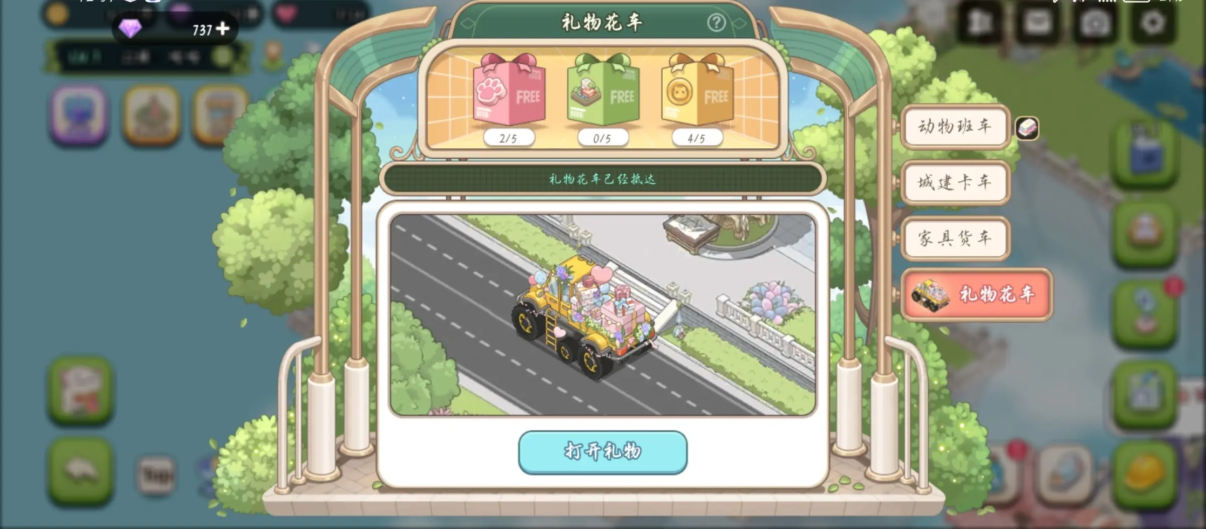 礼物花车:每天有限制,根据喜好选择礼盒。