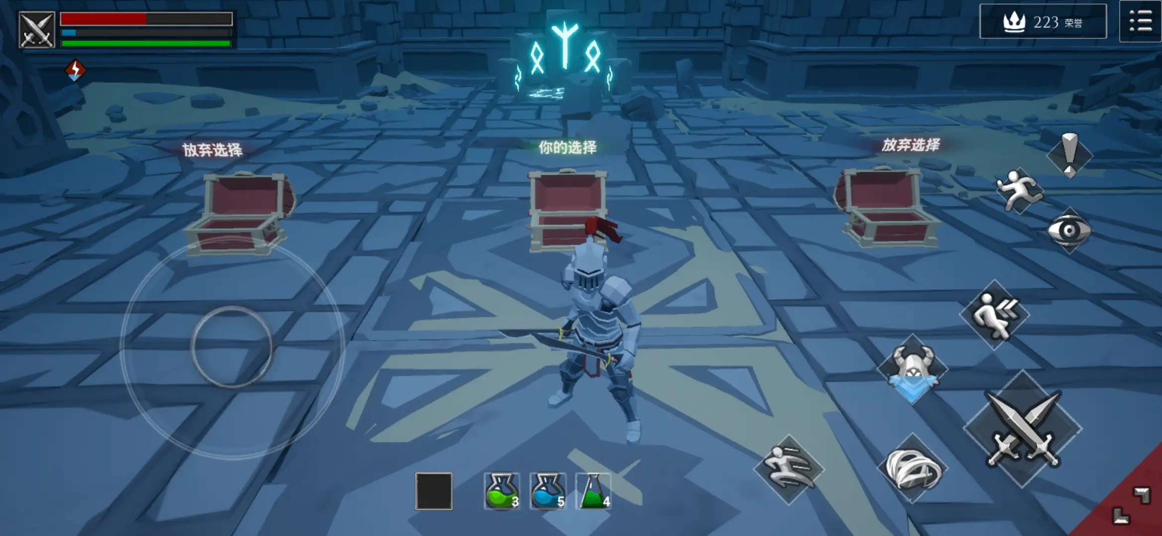 无尽之炼的基础操作与战斗机制和传统动作游戏相近,左侧摇杆负责角色移动,右侧则对应攻击、防御、闪避等功能。