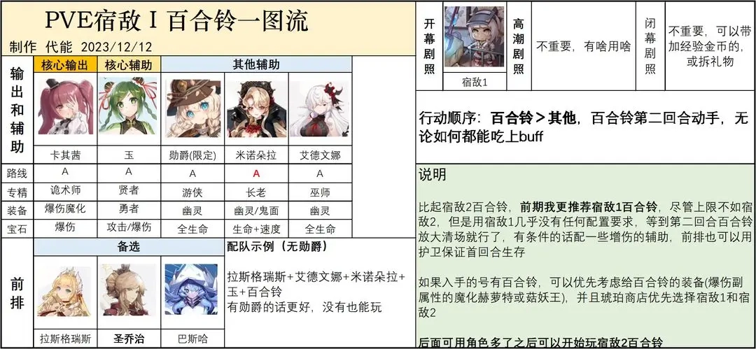 百合铃初始号入坑,则可以以百合铃为核心组队