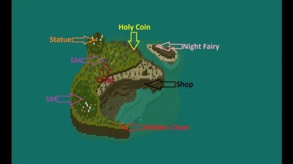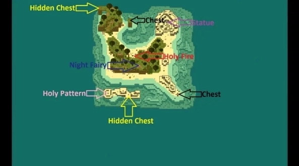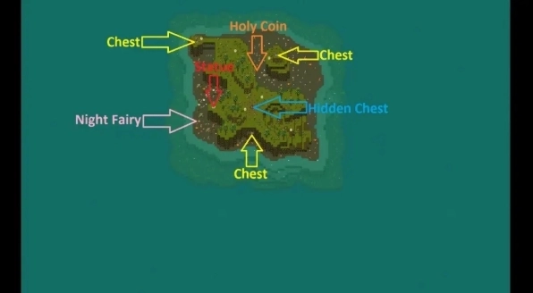 接下来就是各个岛屿雕像及宝箱位置: