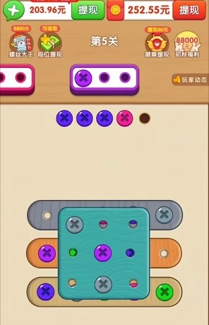 爱上打螺丝,消除螺丝领红包的休闲游戏,玩家需要消除各种颜色螺丝来领取红包奖励,在爱上打螺丝里有很多红包等你去闯关获得,丰富的奖励可以让你自由选择领取,休闲解压的消除闯关会给你新的体验,不断消除更多的螺丝来体验最有趣的闯关吧。