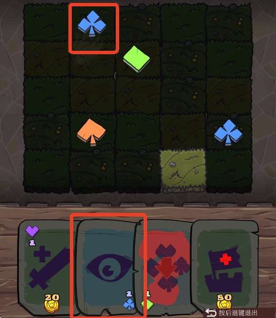 点击来拾取蓝色符文,这样就能使用透视卡了,借助它驱散黑雾,探索房间的各个区块并获取金币。