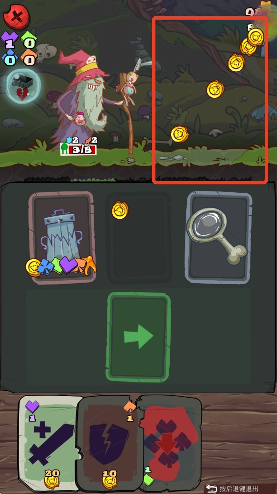 搜集并消耗魔法符文或金币,借助卡牌来提升英雄的生存能力,或是对敌人造成伤害。