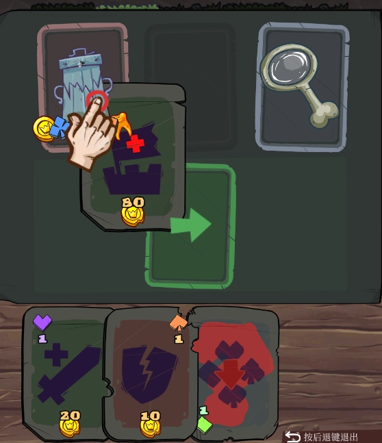 回收的时候得留意回收桶,它会“咬”人,被碰到会受到1点伤害。拿到绿色符文后,就可以使用治疗卡片了。
