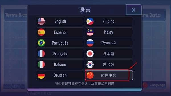 进入游戏后,点击左下角的“language”选项,这就是语言设置功能。