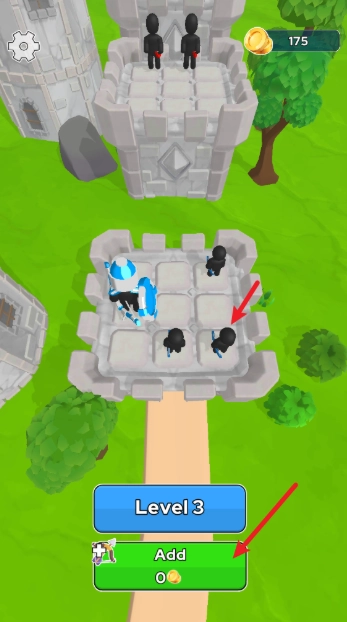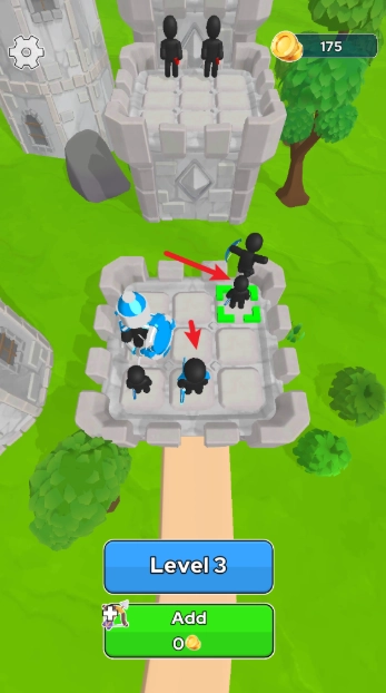 这里有一座弓箭塔可供你使用。把相同类型的火柴人弓箭手合并起来就能提升他们的等级!你招募的弓箭手英雄等级越高,消灭敌人的效率就会越高。