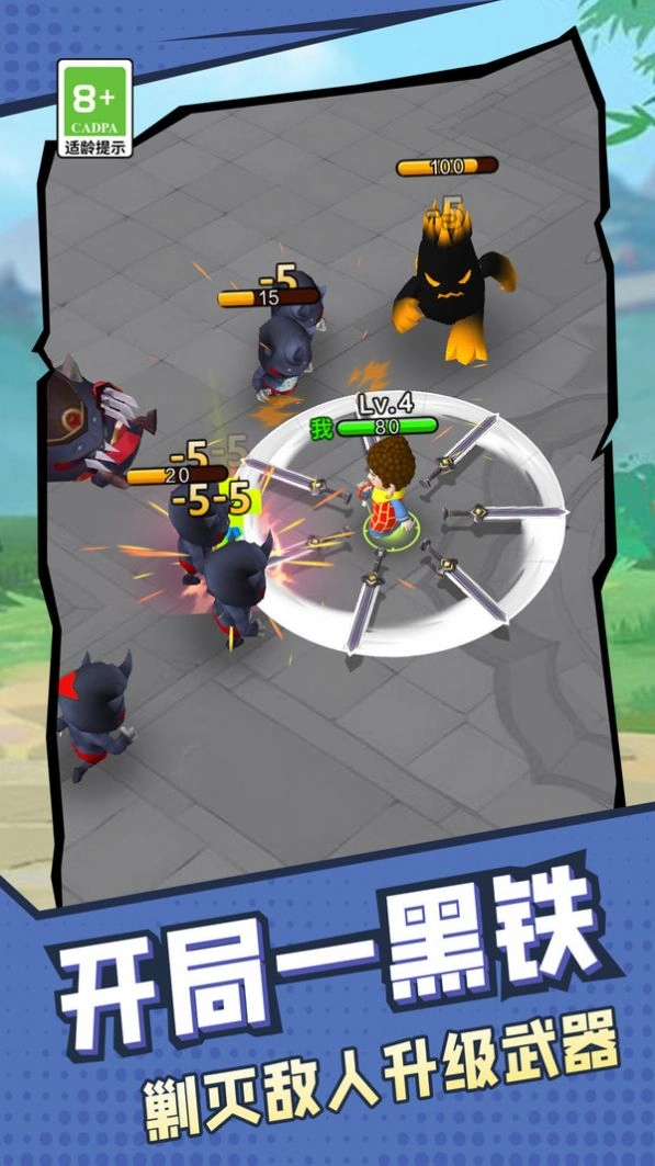 别具一格的宝剑进阶体系:玩家能够借助战胜敌人与达成任务来获取金币,这些金币可用于提升宝剑的攻击力、旋转速度以及攻击范围等各项属性。