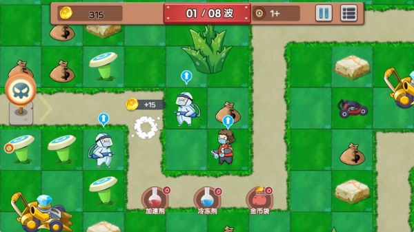 玩家需消耗金币召唤士兵,不同类型的士兵具备各异的能力,需组建防守阵容以快速消灭病毒。