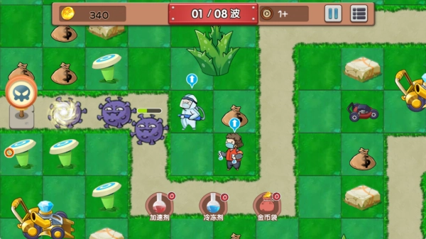 以抵御病毒为核心的生存塔防玩法,玩家可借助部署特色角色搭建防御阵线,并通过位置规划来阻挡病毒的入侵。