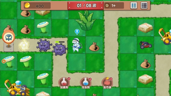 随着关卡难度的逐步增加,病毒的能力也会持续增强,玩家需要及时对角色进行升级,以此来提升防守能力。