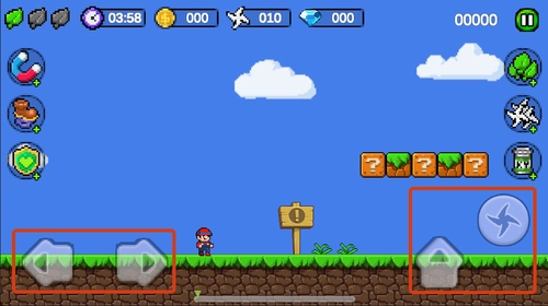 左侧方向键用于操控角色左右移动,右侧的按键则分别对应跳跃与攻击功能,玩家需通过两者的配合来完成平台跳跃关卡以及与敌人的对抗。