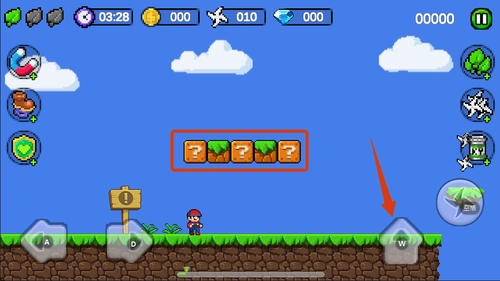 当你靠近带有问号的方块时,点击跳跃键将其顶开,这样就有机会获得金币、道具或者隐藏奖励。