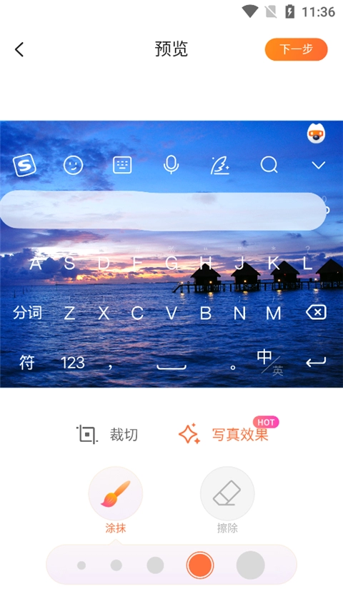 把你不想显示的文字涂抹掉,这样当没有输入操作时,你的键盘呈现出的就是写真效果了。