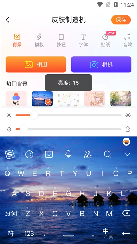 搜狗输入法手机版的皮肤编辑器是一款功能强大又实用的键盘皮肤制作工具,用户借助输入法里的皮肤制造机功能,就能自定义专属的键盘皮肤,让输入界面变得更精美独特。