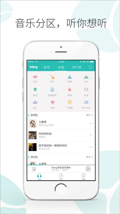 个性化推荐服务:5sing平台会依据用户过往的听歌记录以及音乐偏好,通过智能算法推送与之相关的原创音乐作品,助力用户发掘更多符合自身喜好的音乐内容。