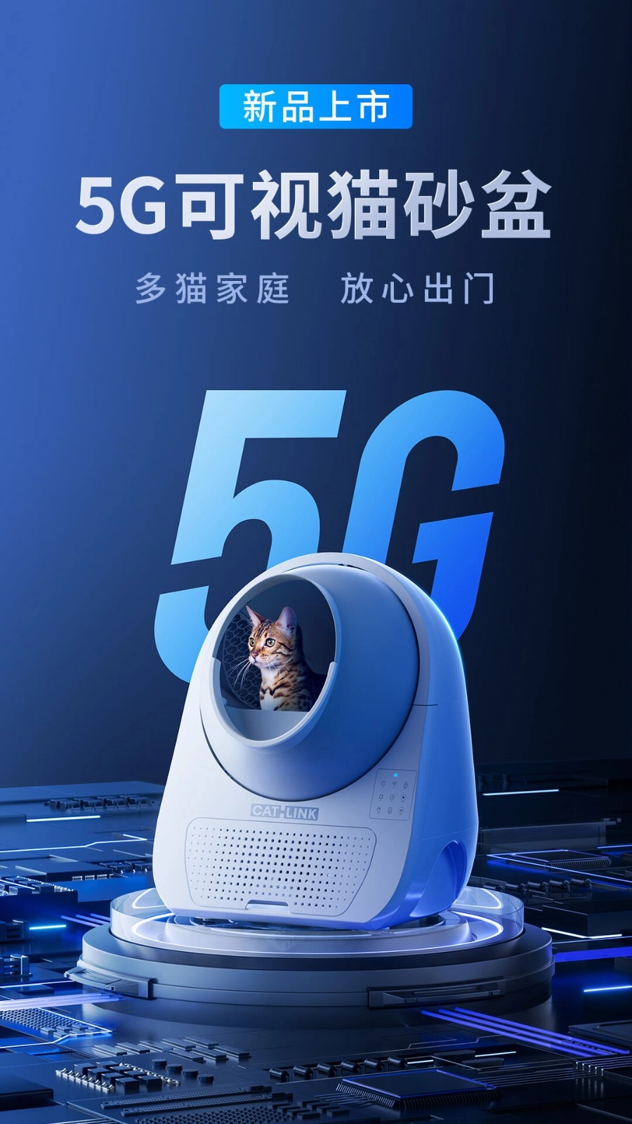 如厕自动清洁系统:配备灵敏的感应装置与高效处理机制,能实时净化猫咪的排泄区域,完全免去用户手动清理的麻烦,让用户拥有更多可自由支配的个人时间。