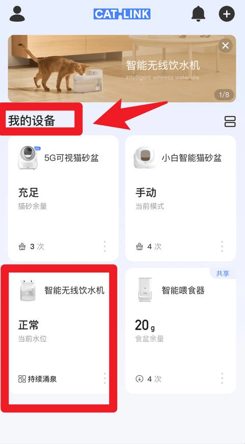 在“我的设备”页面可以查看所有已绑定设备的状态和工作模式,比如饮水机的水位情况。
