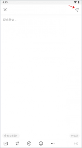 4、输入自己要发布的内容以及图片,写完之后就可以点击右上方的箭头图标发送出去,这时候就发布了一个微博了。