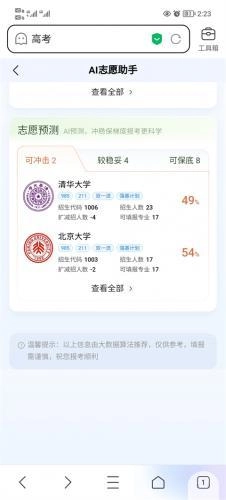 6、再往下划就能够看到能够冲击的报考学校、较为稳妥的以及可保底的学校。